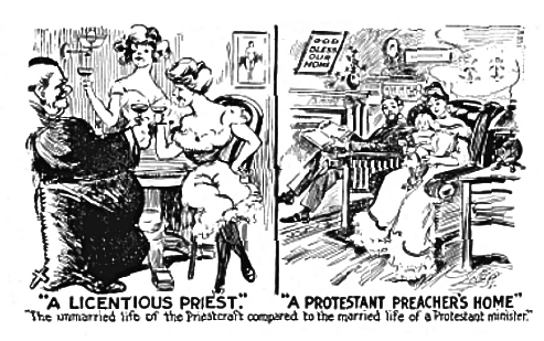 Now, if the offspring of that dear old mother is a bastard, then she is nothing more nor less than a Common whore, and you cannot arrive at any other rational conclusion. This is only reasoning from intelligent deductions; therefore, whenever Catholicism calls the children of Protestant parents bastards simply because these parents were not united in wedlock by a Catholic priest, they villify the sacred name of father and mother, and trail in the slime of disgrace the sweet memories of that sturdy old father and that angelic old Protestant mother.