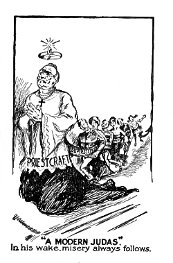 We will take the large cities in the United States as an illustration, and we will find that the saloon-keepers, comparatively speaking, are from the ranks of Catholicism, and to engage in the saloon business is no bar to a member of the Catholic Church, for if this saloon-keeper, no matter if he runs a wine-room in connection with his saloon and is responsible for the downfall of an army of precious girls, he is considered a fit subject for heaven by the Catholic Church provided he liberally donates to the support of this damnable institution.
